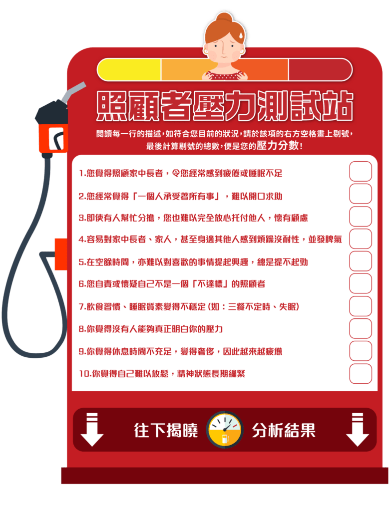 長者生活站 > 長者健康 > 【1分鐘即知】照顧者壓力測試站:您「爆煲」了嗎?! 【1分鐘即知】照顧者壓力測試站:您「爆煲」了嗎?! 正所謂「家有一老,如有一寶」!但家中長者難免有病痛,需要悉心照顧。而且,不少長者更「有啲脾氣」,與他們相處時,需要在溝通上較為謹慎。對一眾需要兼顧事業和「一家大細」的照顧者們來説,不單是體力的挑戰,更是一場情緒的拉鋸戰,少一點耐心也可能壓力「爆煲」!立即進行以下1分鐘小測試,看看您的壓力指標屬於哪一級! 結果分析 2分 →「輕壓穩定級」您的狀態穩定,雖有時緊張,但仍能自我調整心態 6分 →「高壓危機級」您的焦慮感不斷累積,身體和情緒或已出現負面情況 4分 →「中壓注意級」您間中感到疲累,壓力明顯增加,需要開始注意 8分或以上 →「壓力爆煲級」您的身心均已受到重度影響,急需處理,阻止惡化 若您已經處於「壓力爆煲級」,當然要盡快處理各種身心問題!即使是最輕微的「輕壓穩定級」,放鬆也同樣重要,不能忽視!「放鬆一點」説起來很簡單,但壓力總是無意間慢慢累積,久而久之,讓人心力交瘁,因此,想真正做到舒緩壓力卻很難。與其不斷付出,關心和照顧家中長者,反而關心自己多一點,讓自己好好喘口氣,才有能力繼續關心別人!不妨記住以下簡易呼吸法,為自己「充電」!「4-7-8 呼吸法」每天找5 – 10分鐘的空餘時間,坐直或躺下姿勢,同時保持將舌尖頂著上顎的牙齦位置,並重複以下步驟4次,便能調節神經系統,適合任何希望快速緩解壓力、重拾平靜的人 [1]。先用力用嘴巴吐氣,再發出「呼」的聲音閉上嘴巴,用鼻子吸氣4秒屏住呼吸,憋氣7秒從嘴巴吐氣8秒,再發出「呼」的聲音 一線通®平安鐘服務 照顧者強而有力的後盾 不少照顧者反映,當自己外出時,獨留長者在家,便很放不下心,害怕長者出現突發狀況卻沒人知道,錯過救援。即使聘請了外傭,亦難以完全放心,因外傭並非以廣東話為母語,即使及時報警求助,亦可能難以清晰説出地址等資料,延誤救援時間。若為家中長者登記「一線通®平安鐘」服務,不僅長者自己能在緊急時刻「一鍵即時求助」,亦能有7/24服務支援中心時刻協助作為照顧者的您,一同守護家中長者,減輕您的心頭重擔,天天更安心! 「一線通®無線平安鐘」重點功能 一鍵快速求助:即時接駁 7/24 服務支援中心對話適合任何家居環境:無需固網電話線,簡易自行安裝藍牙防水遙控求助掣:可掛頸隨身攜帶,能覆蓋多房多樓層家居專業防水效能,洗澡時也能求助 WhatsApp 表格查詢 了解更多 「一線通®守護卡」重點功能 一鍵快速求助:即時接駁 7/24 服務支援中心對話攔截陌生來電:只限指定電話通話,阻止詐騙電話位置搜尋功能:經應用程式隨時知道長者所在位置主動偵測守護:主動致電無活動監測及失聯長者低電量提示:7/24 服務支援中心致電提醒長者充電 WhatsApp 表格查詢 了解更多 「一線通智守護®APP」重點功能 *此服務不適用於智守護® APP (基礎版) 一鍵快速求助:即時接駁 7/24 服務支援中心對話服藥提醒 + 認藥:按時以圖片提示長者服藥、記錄進度協助門診預約,掌握服藥情況 + 覆診資訊:煩瑣預約程序由專人安排,更設應診提示即時了解長者服藥情況、查看 / 更改覆診日期等位置搜尋功能:經應用程式隨時知道長者所在位置主動守護安全*透過「主動偵測、緊急通話、低電量提示」,主動了解長者情況,確保長者安全 WhatsApp 表格查詢 了解更多 資料來源:[1] Just Breathe: Using Breathwork for Wellbeinghttps://awcim.arizona.edu/health_hub/awcimagazine/just_breathe_using_breathwork_for_wellbeing.html 長者健康長者照顧 previous長者「春困」疲倦?睡前3招精靈返!失神發生意外如何應對?