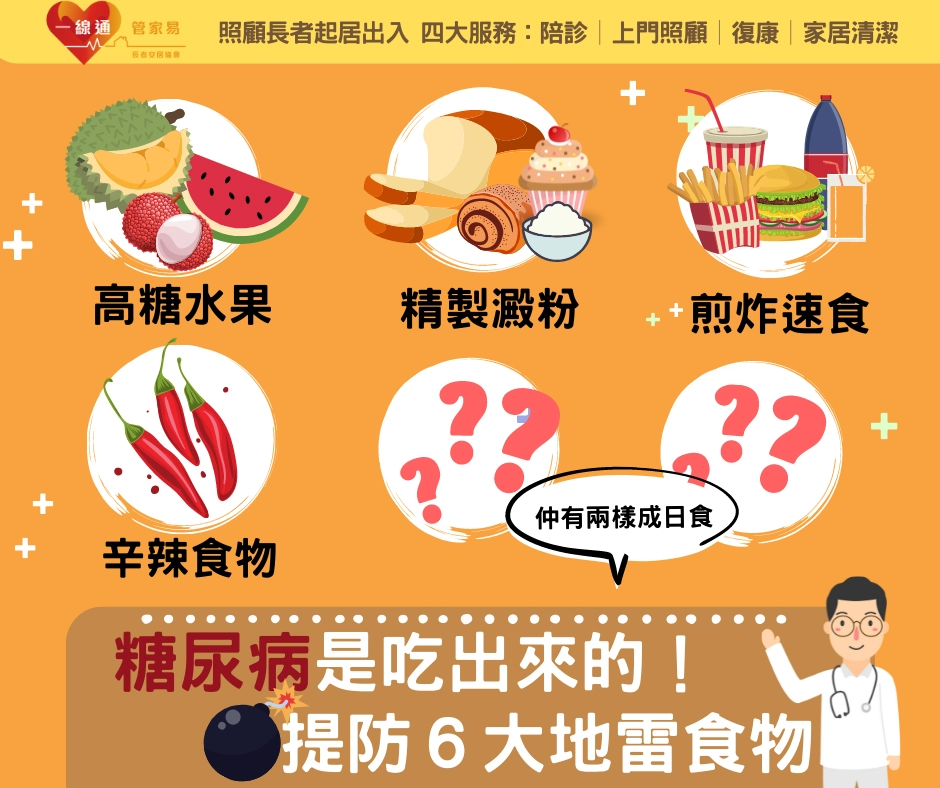 香港有70萬糖尿病患者,除咗靠藥物控制,其實透過改變生活方式,包括控制飲食和運動,以維持血糖的平穩。要避免「禍從口入」,照顧者留意以下幾類食物係禁忌!提提老人戒口啦~