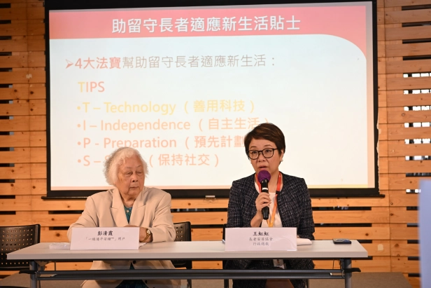 協會行政總裁王虹虹女士(右)倡議「TIPS」錦囊,幫助長者適應留守生活