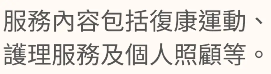 一線通管家易®服務選擇:家居服務、護送服務、日間到戶看顧、個人照顧服務、復康運動。